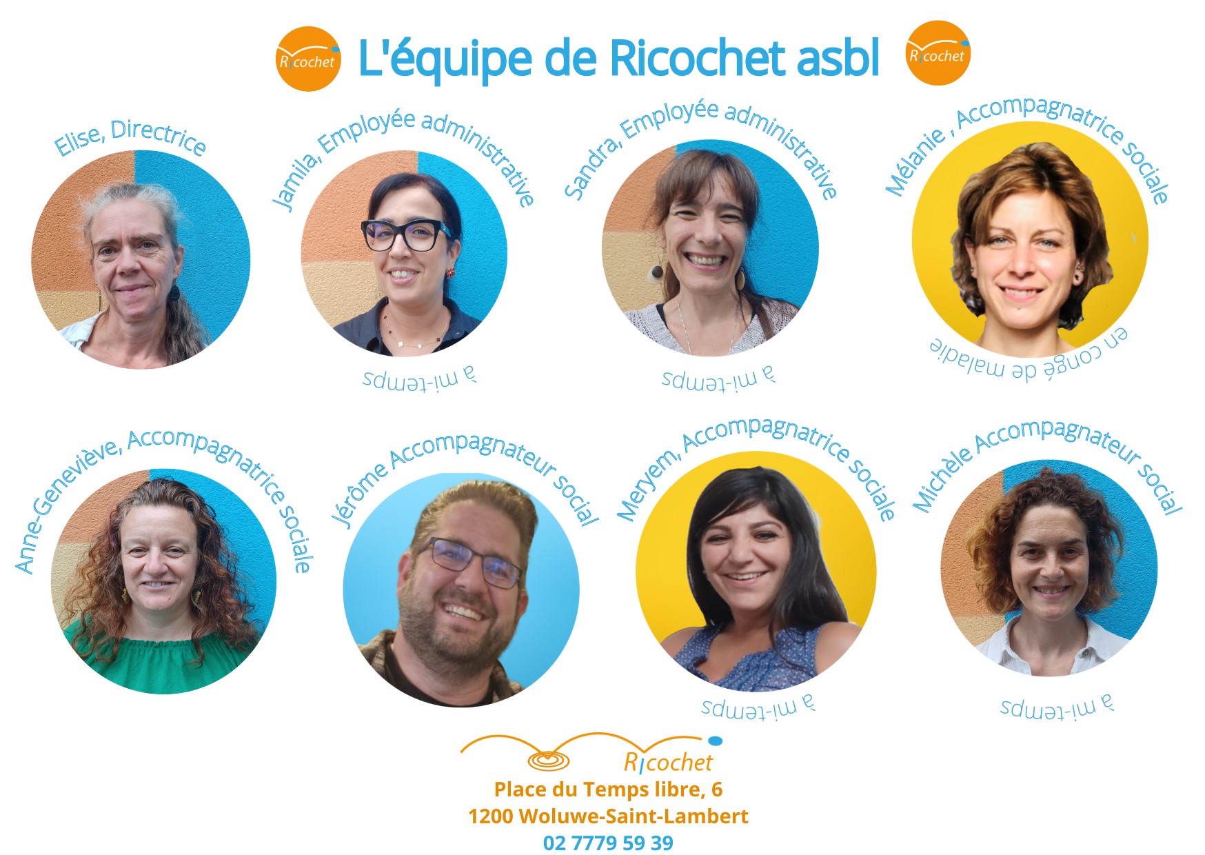 L’équipe de Ricochet asbl est composée de huit personnes :